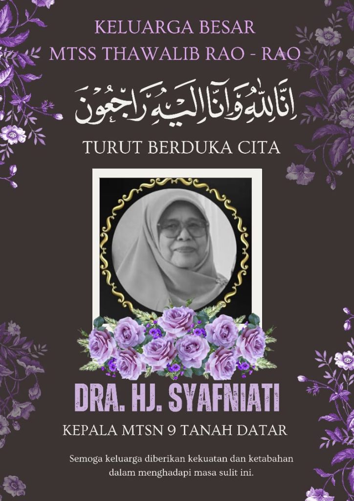 Keluarga Besar MTsS Thawalib Rao – Rao turut berduka cita yang mendalam atas berpulangnya Ibuk Dra Hj. Syafniati