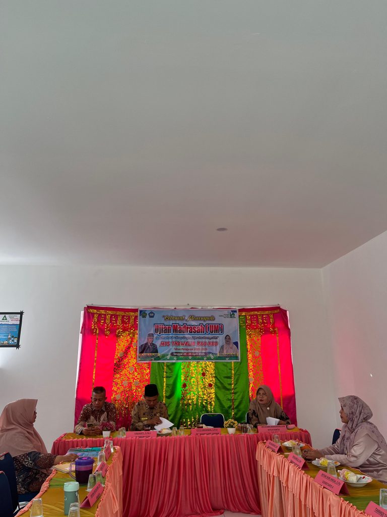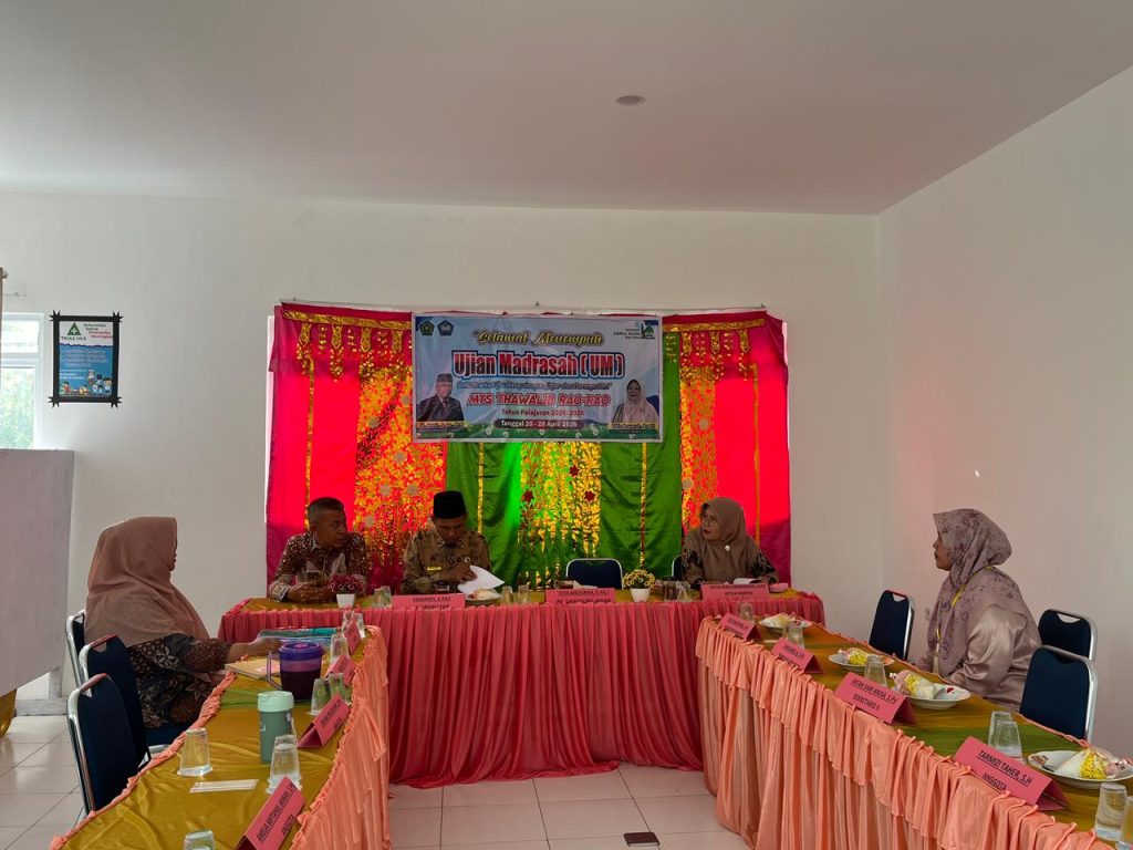 Hari ini Kamis, 23 April 2026, Kementerian Agama Kabupaten Tanah Datar melaksanakan kegiatan monitoring pelaksanaan Ujian Madrasah (UM) di MTsS Plus Thawalib Darul Huda Rao-Rao. Kegiatan ini bertujuan untuk memastikan bahwa pelaksanaan ujian berjalan dengan tertib, lancar, serta sesuai dengan prosedur dan ketentuan yang telah ditetapkan.Tim monitoring disambut langsung oleh Kepala Madrasah beserta majelis guru di ruang posko UM.