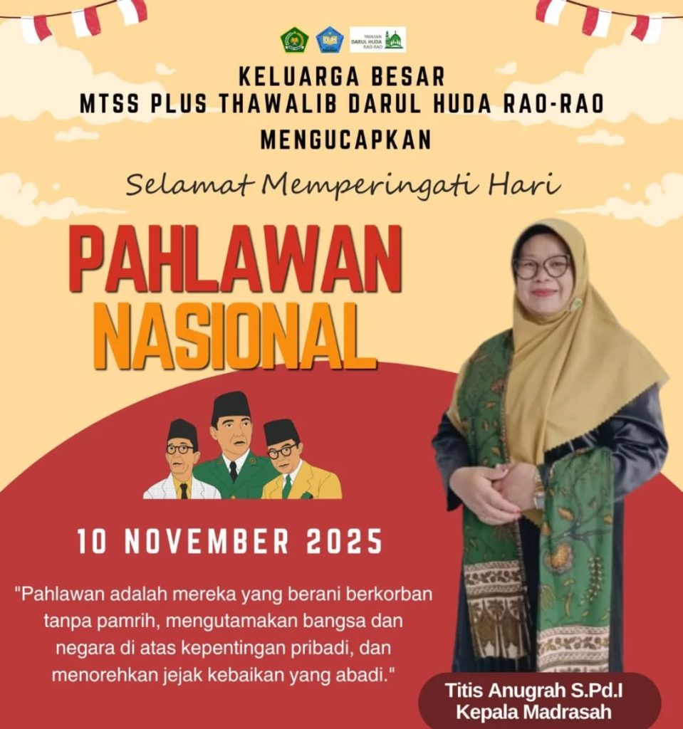 Keluarga Besar MTsS Plus Thawalib Darul Huda Rao-Rao mengucapkan Selamat Hari Pahlawan 10 November 2025